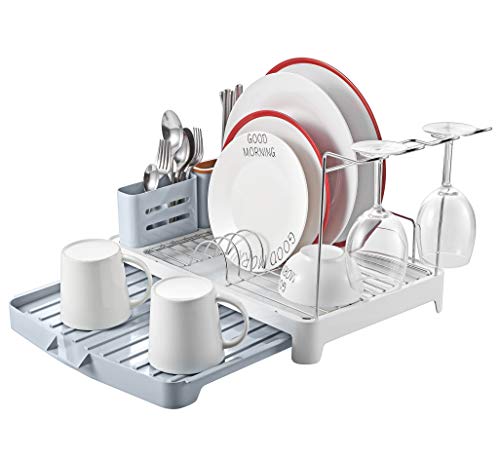 Ou encore l'égouttoir en acier inoxydable compact avec compartiment pour verres à pied :